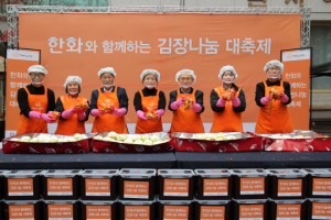 한화그룹 충청지역봉사단은 25일 대전 서구 관저종합사회복지관에서 '2025 한화와 함께하는 김장나눔 대축제' 행사를 진행했다.'한화와 함께하는 김장나눔 대축제'는 겨울나기에 어려움을 겪는 충청지역 취약계층 이웃들에게 온기를 나누는 행사로 14년째 이어지고 있다.이번 행사에는 김신연 한화사회봉사단장(한화솔루션 사장)과 한화그룹 충청지역 사업장 소속 임직원 30여 명, 박정순 관저종합사회복지관장 등 봉사자 60여 명이 참여했다.김부수 한화모멘텀 아산사업장 과장은 "최근 갑자기 추워진 날씨 탓에 걱정이 많았는데, 정성을 담아 준비한 김치