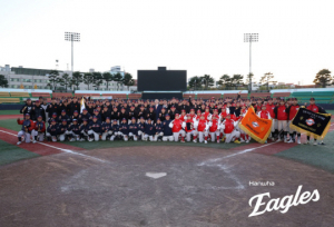 김승연 한화그룹 회장이 2025 KBO 한국시리즈 준우승을 한 한화이글스 선수단과 코칭스태프의 한 해 투혼을 격려했다.한화그룹은 5일 "김승연 회장이 선수단, 코치진, 현장 스태프 등 60명에게 이글스의 상징색인 오렌지 컬러의 휴대전화를 전달했다"며 "끝까지 포기하지 않은 선수단의 열정과 팀워크에 감사의 뜻을 전했다"고 밝혔다.김 회장은 "한국시리즈 준우승을 진심으로 축하한다. 마지막까지 최선을 다한 선수단의 노력에 뜨거운 박수를 보낸다"며 "흘린 땀방울 하나하나가 내년 우승의 밑거름이 되길 바란다. 한화이글스가 더 높이 비상하길