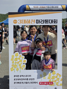 ○…세종시에 거주하는 신혜령(42) 씨와 이혁수(42) 씨 부부가 10살 딸 이연화 양, 8살 아들 이연후 군, 그리고 2022년생 막내 이연희(29개월) 양와 함께 제21회 3대하천 마라톤대회에 참가해 눈길을 끌었다. 이번 대회 최연소 참가자인 이연희 양은 언니, 오빠를 따라 신생아 때부터 현장을 찾았지만 본격적으로 함께 달리는 것은 올해가 처음이다. 신 씨는 "아이들이 마음껏 달릴 수 있는 공간이 많지 않아 가족이 함께 도전하게 됐다"고 웃어 보였다. 이연희 양은 유모차에 탑승해 가족과 함께 완주에 나섰다. 신 씨는 "이렇게 많