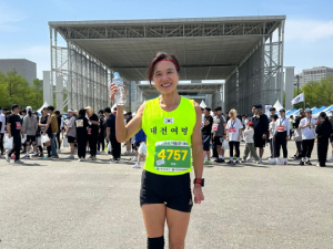 "제가 1등으로 들어왔는지도 몰랐습니다. 우승은 상상도 못 했는데, 그동안 열심히 뛴 보람이 있네요."27일 대전엑스포시민광장에서 열린 제21회 대전 3대하천 마라톤대회 5㎞ 여성 우승자 이재은(30) 씨. 그는 24분 26초의 기록으로 결승선을 통과하며 여자 5㎞ 코스에서 영광의 1위를 차지했다.현재 계룡건설에서 근무 중인 이 씨는 4년 동안 취미로 달리기를 하고 있는 '러너'다. 취업 준비생 시절 기분 전환을 위해 천변을 산책하다가 달리기의 매력에 푹 빠졌고, 기록을 내고 싶은 마음에 이번 3대하천 마라톤 대회에 처음으로 참가하
