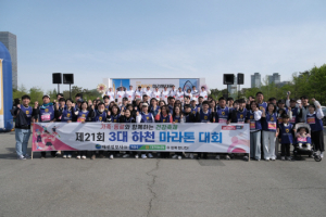하나은행 충청영업그룹은 27일 대전 엑스포시민광장에서 열린 제21회 3대하천 마라톤대회에서 시민들과 함께 뛰었다.이동열 충청영업그룹 부행장, 김세용 대전영업본부 지역대표 등을 비롯한 임직원 60여 명은 이날 모두 5㎞ 코스에 참가했다. 하나은행 임직원들은 1회 대회부터 꾸준히 참가해 전통을 이어가고 있다.대회에 참가한 임직원들은 건강을 다질 수 있는 좋은 기회라고 입을 모았다.한 참가자는 "별도 마라톤 운동을 하고 있지는 않지만 벌써 네 차례나 대회에 참가했다"며 "대회 소식이 있을 때 '이번 기회에 운동 한 번 하자'는 마음을 먹