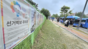 제21대 대통령선거 재외국민투표가 시작된 20일 오전 11시 30분쯤 대선 서구 둔산동 시청역 네거리 앞. 30도를 웃도는 더운 날씨를 피해 나무 그늘 사이로 바쁘게 오가는 시민들에게 기호1번 이재명 후보 선거운동원들이 손을 흔들고, 연신 허리를 숙였다. 지하철역 한켠에 주차된 선거운동차량에 오른 박범계 더불어민주당 골목골목 선대위원장의 지지호소 연설은 시민들의 귀에 꽂혔다. 이곳을 지나는 일부 운전자들은 지지의 의미로 경적을 길게 누르기도 했다.연설을 지켜보던 일부 시민들은 박 위원장 연설이 끝나자 화답하듯 손을 흔들었다. 악수와