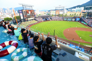 한화이글스와 KIA타이거즈의 전반적 마지막 시리즈를 앞둔 8일 오후 대전 한화생명볼파크.구장 직원들과 팬들의 시선은 한 곳으로 쏠렸다. 주인공은 이날 정식 개장한 '인피니티 풀'이다.인피니티 풀은 3루 측 4층에 위치한 가로 15m, 세로 5m, 깊이 1.2m 규모의 국내 최초 야외 수영장 좌석으로, 최대 40명까지 동시 수용이 가능하다.국내 첫 시도로, 여름철 관람 불편을 날려줄 신구장의 명물로 주목받아왔다. 특히 이날 낮 기온이 36도에 이르는 등 무더워진 탓에 인피니티 풀을 향한 기대도 한층 높아진 분위기였다.구단 측은 경기