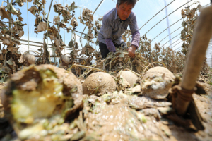 "농사일 30여 년 만에 처음 있는 일이에요. 처음엔 '내가 악몽을 꾸나' 했죠."21일 오전 찾은 충남 예산군 신암면 조곡리 일대. 수확을 앞두고 탐스럽게 익어가야 할 여름 밭은 흙탕물에 파묻혀 있었다. 비닐하우스 수십 동이 무너졌고, 안에 심어져 있던 메론과 수박은 썩어 문드러진 채 악취를 뿜었다. 며칠 전 내린 괴물 폭우가 수확을 앞둔 제철 과일을 삼켰다. 하우스에 대롱대롱 매달린 채 진흙탕 물을 뒤집어 쓴 메론과 수박은 그렇게 고약한 냄새를 내뿜으며 썩어가고 있었다.이날 복구에 나선 자원봉사자 등 100여 명은 현장에 모여