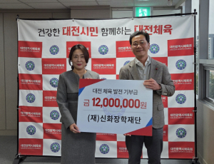 (재)신화장학재단이 대전체육 발전에 힘을 보탰다.신화장학재단은 17일 체육발전기금으로 써달라며 1200만 원을 대전시체육회에 기탁했다.시체육회는 이 기금을 지역 체육 유망주 발굴과 체육 저변 확대 사업에 활용될 예정이다.김영미 신화장학재단 이사장은 "지역 체육 인재들이 더 좋은 환경에서 꿈을 펼치는 데 작은 보탬이 되길 바란다"며 "대전체육의 건강한 성장과 밝은 미래를 응원한다"고 말했다.이승찬 대전광역시체육회장은 "기탁금은 대전체육 발전에 큰 힘이 될 것"이라며 "뜻을 전해준 김영미 이사장에게 깊이 감사드린다"고 밝혔다.한편 신화