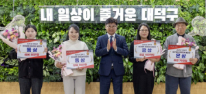 대전 대덕구가 최근 구청 대회의실에서 '대덕구 사진 공모전' 시상식을 개최했다대덕구에 따르면 '숨겨진 대덕의 명소 발굴'을 주제로 열린 이번 공모전은 전국에서 203점(일반 167점·드론 36점)이 접수됐으며, 종합 심사를 거쳐 일반 13점, 드론 8점 등 총 21점의 우수작이 선정됐다.일반부문 최우수상은 안성진 씨의 '함께하는 여행'이 선정됐다. 금강생태마당푸른 자연을 배경으로 사진을 찍는 사람들의 뒷모습을 따뜻하게 담아냈다는 평이다.드론부문 최우수상은 노을빛에 물든 용전근린공원을 담아낸 정소현 씨의 '예쁜 공원'이 차지했다.구는