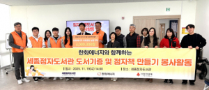 세종사회복지공동모금회는 한화에너지 임직원들이 최근 세종시 보람동 세종점자도서관을 찾아 시각장애인을 위한 도서 구입 지원 성금 300만 원을 전달했다고 24일 밝혔다.한화에너지는 지난 2023년부터 세종점자도서관과 연계한 사회공헌 활동을 꾸준히 펼치고 있다.임직원들은 시각장애인 인식개선 교육과 점자 봉사활동 교육을 받은 뒤 직접 점자책을 제작하는 봉사활동에 참여하고 있다. 또 점자도서 제작에 필요한 도서구입비도 정기적으로 지원하고 있다.봉사활동에 참여한 한 임직원은 "시각장애인들이 책을 통해 세상의 이야기를 나눈다는 말을 듣고 점자책