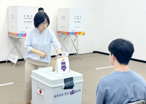 제21대 대통령 선거 사전투표가 시작된 29일 오전 7시쯤 대전시청 1층에 설치된 사전투표소를 찾은 시민들이 소중한 한 표를 행사하고 있다. 우혜인 기자
