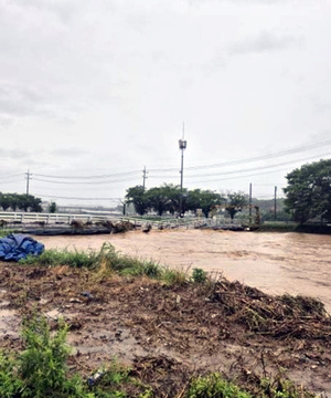 17일 충청권에 호우 특보가 발효 중인 가운데 세종시 소정면 광암교가 전날부터 내린 비의 영향으로 교각 일부가 내려앉았다.