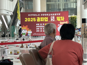 28일 전국보건의료산업노동조합 대전충남지역본부 건양대학교의료원지부가 대전 서구 관저동 건양대학교병원에서 총파업 출정식을 갖고 파업에 돌입했다. 최다인기자