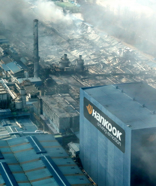 지난달 한국타이어 대전공장에서 발생한 대형 화재로 2공장이 모두 타버리고 검은 연기와 함께 재만 남아버린 참혹한 상황을 고스란히 담았다.