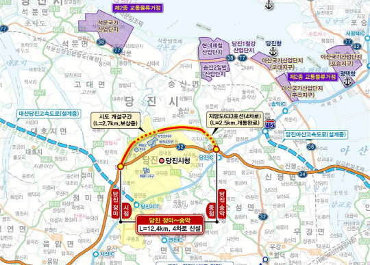 그러나 당진-인주 구간은 지난 2021년 2월 기본 및 실시설계에 착수했지만, 지난해 5월 타당성 재조사가 시행돼 사업이 늦어지고 있는 실정이다.