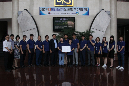 KB오토시스의 55세 이상의 고령 노동자가 전체 근로자의 약 20%다. 정년 퇴임 후 재채용 비율이 90%를 초과한다. 노동자의 노고와 기여, 기술력을 인정한다. 청년 채용에도 많은 관심을 기울인다. 사람이 곧 경쟁력이라는 의식에서다. 회사는 2017년 노사문화 우수기업과 노사문화 유공 금탑훈장을 수상했다.