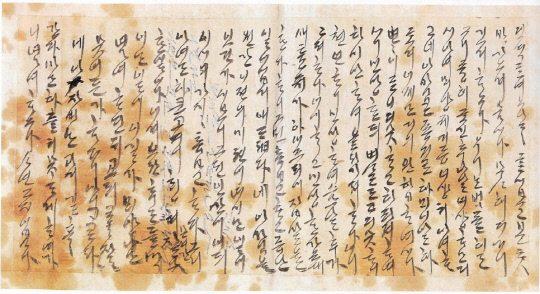이 한글편지는 할머니 김태희(金兌喜, 1632-1701)가 이하곤(李夏坤)과 혼인한 큰손녀 송씨(1678-1742)에게 보낸 것이다. 김태희는 예조참의를 역임한 제월당(霽月堂) 송규렴(宋奎濂, 1630-1709)의 아내이자, 충청도관찰사와 대제학을 역임한 옥오재(玉吾齋) 송상기(宋相琦, 1657-1723)의 어머니다. 안동 김씨 청음(淸陰) 김상헌(金尙憲)의 손녀로, 17세(1648년)에 송규렴과 혼인하여 70세의 나이로 운명하기까지 회덕(현 대덕구 읍내동 후곡)에서 살았다.