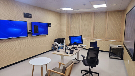 온라인학교에선 최신 IT 기자재로 구성된 온라인수업 전용 스튜디오에서 다양한 시청각 교수학습 자료를 활용해 수업한다. 대형 모니터 4대, 필기 가능한 태블릿 모니터 1대로 다양한 수업 장면을 제공, 학생들의 수업 참여를 극대화하고, 동시 피드백을 지원하는 가상 수업 공간을 활용해 실시간으로 수업 내용을 주고받아, 비대면 수업의 한계를 극복하고 있다.