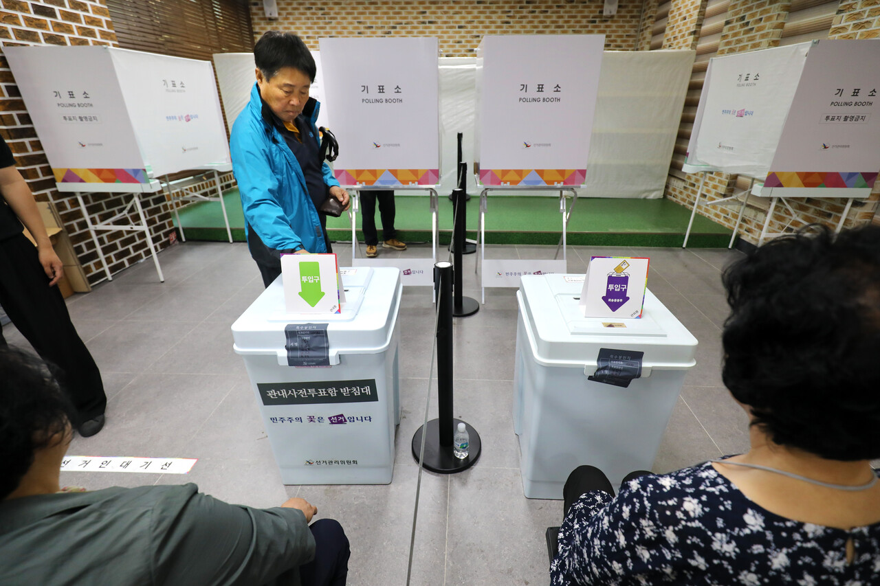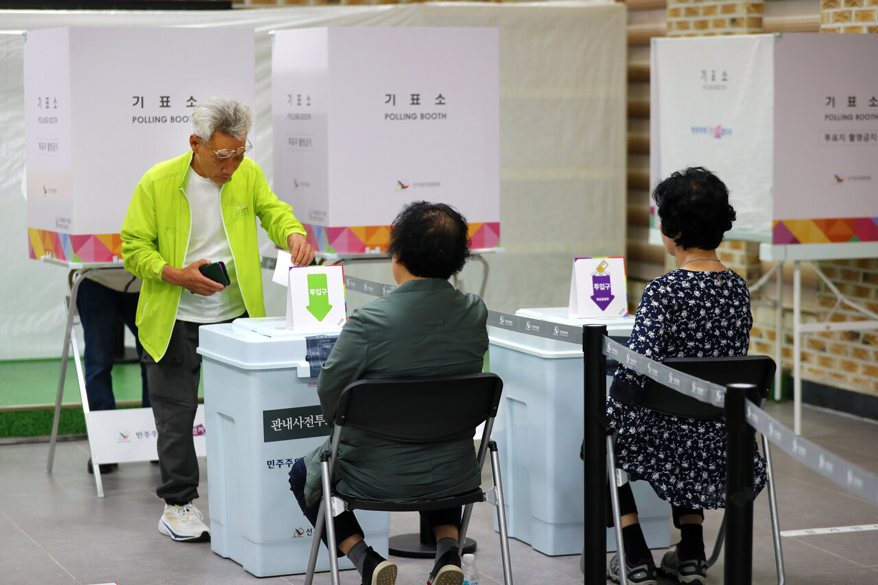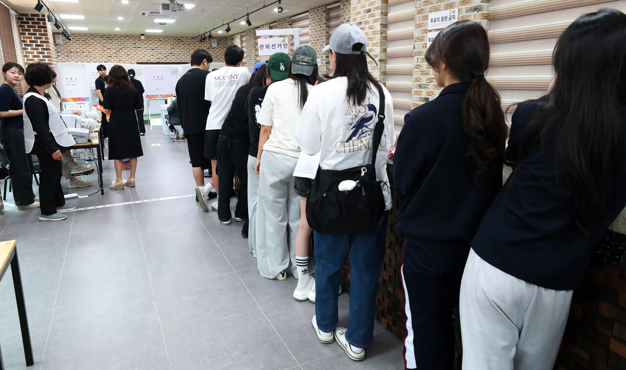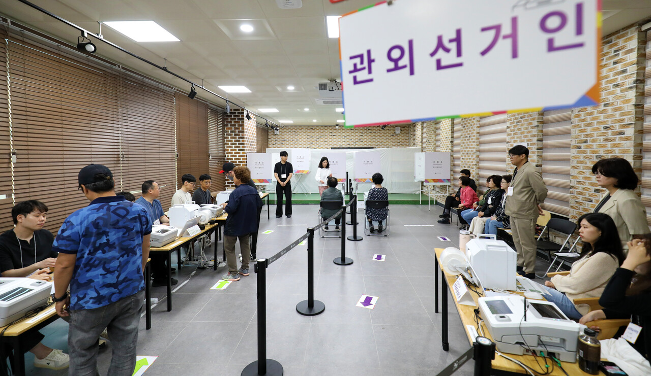제21대 대통령 선거 사전투표가 시작된 29일 대전 서구 도마2동 제일고등학교 1층 스타북스에 마련된 사전투표소에 시민들이 쌀쌀한 이른 아침 6시부터 삼삼오오 찾아와 소중한 한 표를 행사하고 있다. 차가운 공기 속 묵직한 발걸음마다 나라의 미래를 향한 진심이 조용히 스며든다.