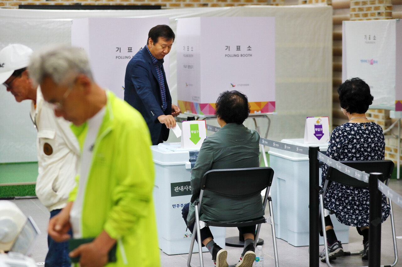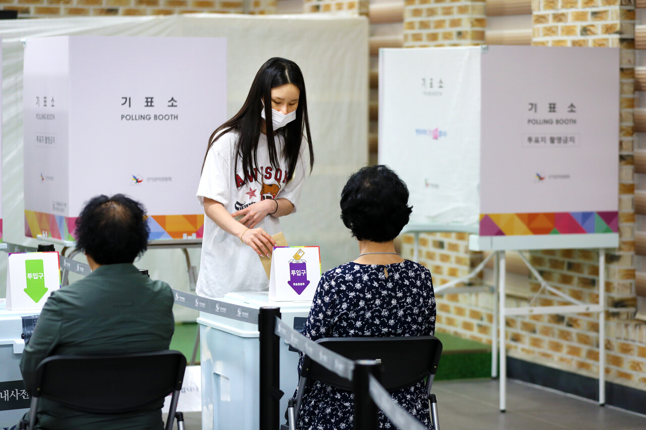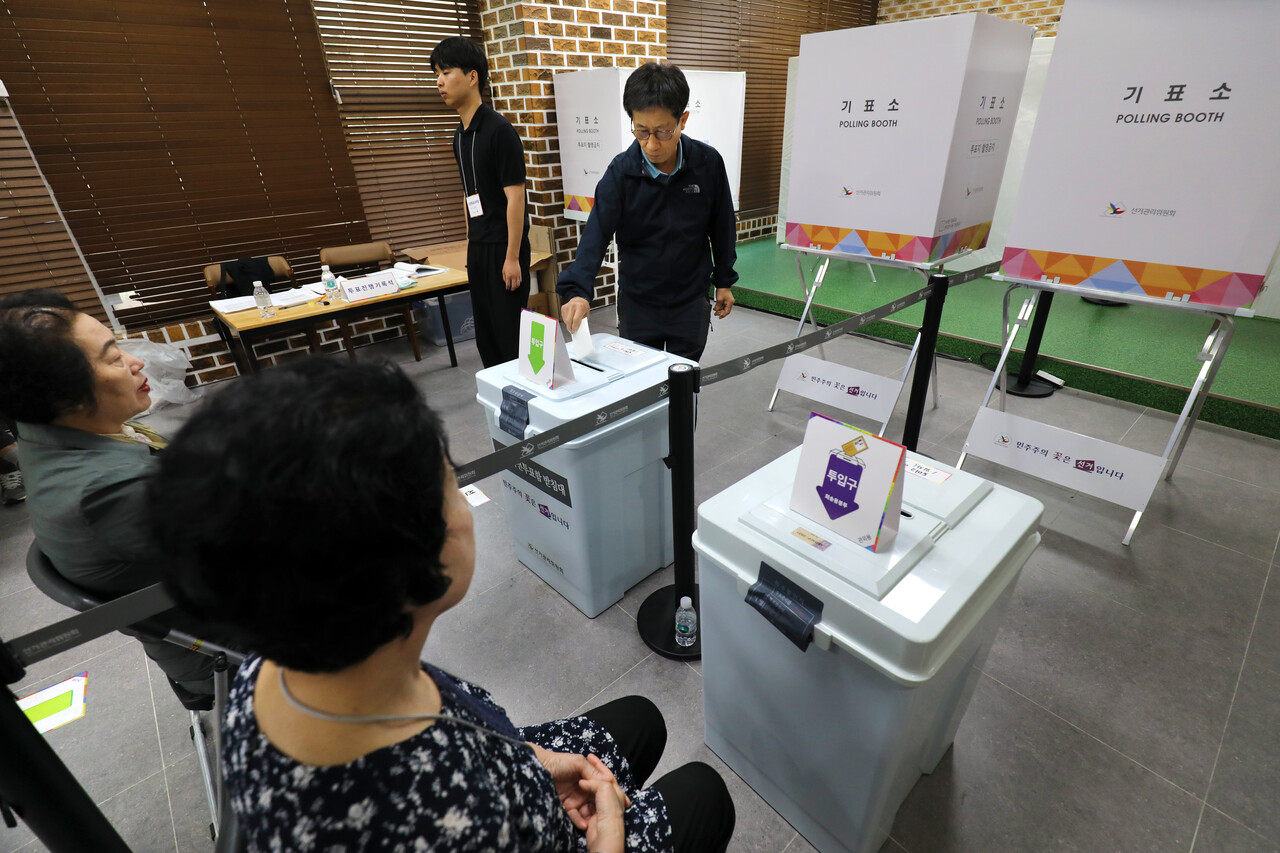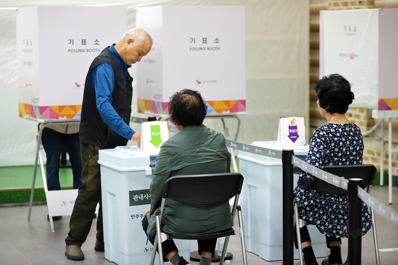 제21대 대통령 선거 사전투표가 시작된 29일 대전 서구 도마2동 제일고등학교 1층 스타북스에 마련된 사전투표소에 시민들이 쌀쌀한 이른 아침 6시부터 삼삼오오 찾아와 소중한 한 표를 행사하고 있다. 차가운 공기 속 묵직한 발걸음마다 나라의 미래를 향한 진심이 조용히 스며든다.