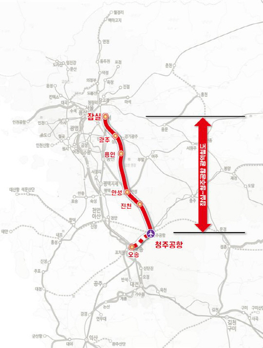 충북은 내륙과 수도권을 연결하는 교통망 확충에 집중하고 있다. 영동~진천(오창) 고속도로, 충청내륙고속화도로, 잠실~청주공항 광역급행철도, 청주공항~김천 철도 등 굵직한 사업이 병행 추진 중이다. 특히 잠실~청주공항 광역급행철도는 수도권 접근성을 개선해 청주국제공항과 충북혁신도시를 활성화할 핵심 기반시설로 꼽힌다. 다만 총 9조원에 달하는 사업비가 최대 관건이란 지적이다.