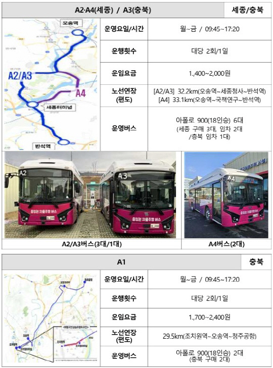 세종시·대전시·충북도는 BRT 노선을 기반으로 하는 광역 자율주행버스 실증사업에 속도를 내고 있다. 오송~세종~반석역 구간에 투입된 레벨3 자율주행 차량은 최고 시속 80㎞로 주행하며, 운전원과 안전요원이 동승해 비상상황에 대비한다. 올해까지 실증 운행을 마친 뒤, 향후 레벨4 단계 상용화를 목표로 첨단 교통기술 개발을 이어갈 계획이다.