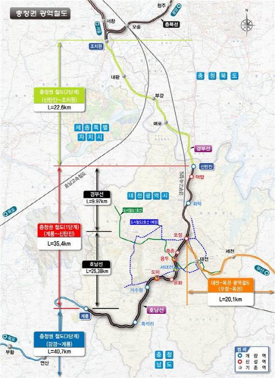 ◇충청권 광역철도…생활권 잇는 핵심 사업=충청권 광역철도는 대전·세종·충남·충북을 하나의 생활권으로 잇는 광역 교통망 구축 사업이다. 1단계 사업은 충남 계룡-대전 신탄진 35.4㎞ 구간으로, 경부선과 호남선 기존 선로를 개량해 광역도시철도로 활용한다. 2011년 국가철도망 계획에 처음 반영돼 2015년 예비타당성조사(예타)를 통과했다.