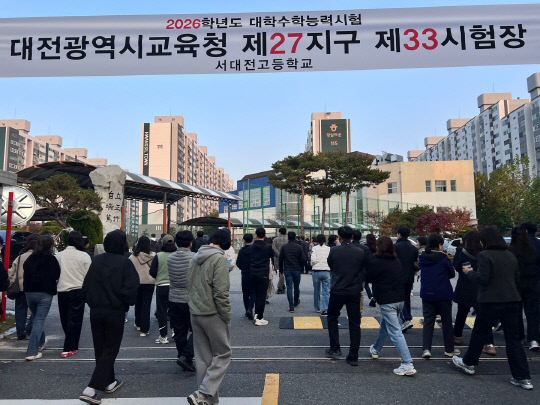 같은 시각 제27지구 제33시험장 서대전고 앞 역시 긴장감 속에서 학부모들과 학생들이 몰려들었다. 학부모들은 교문 너머를 바라보며 연신 자녀를 찾았고, 시험을 먼저 마친 학생들은 서로의 얼굴을 살피며 안도의 한숨을 내쉬었다.