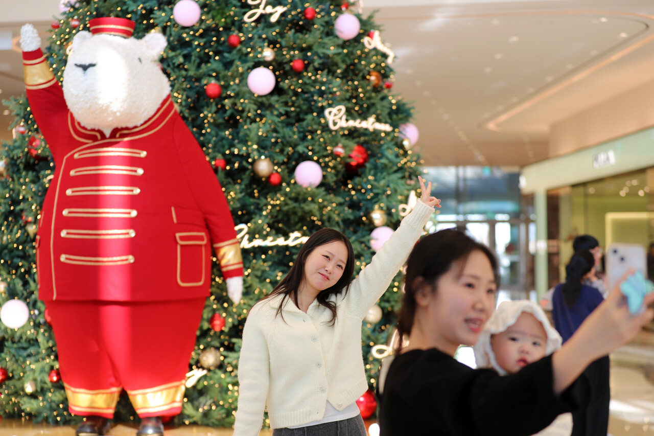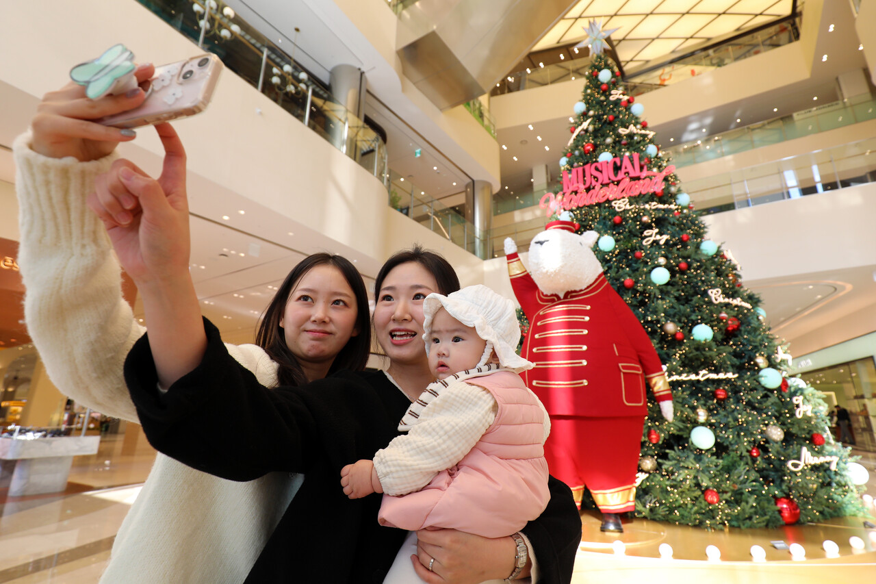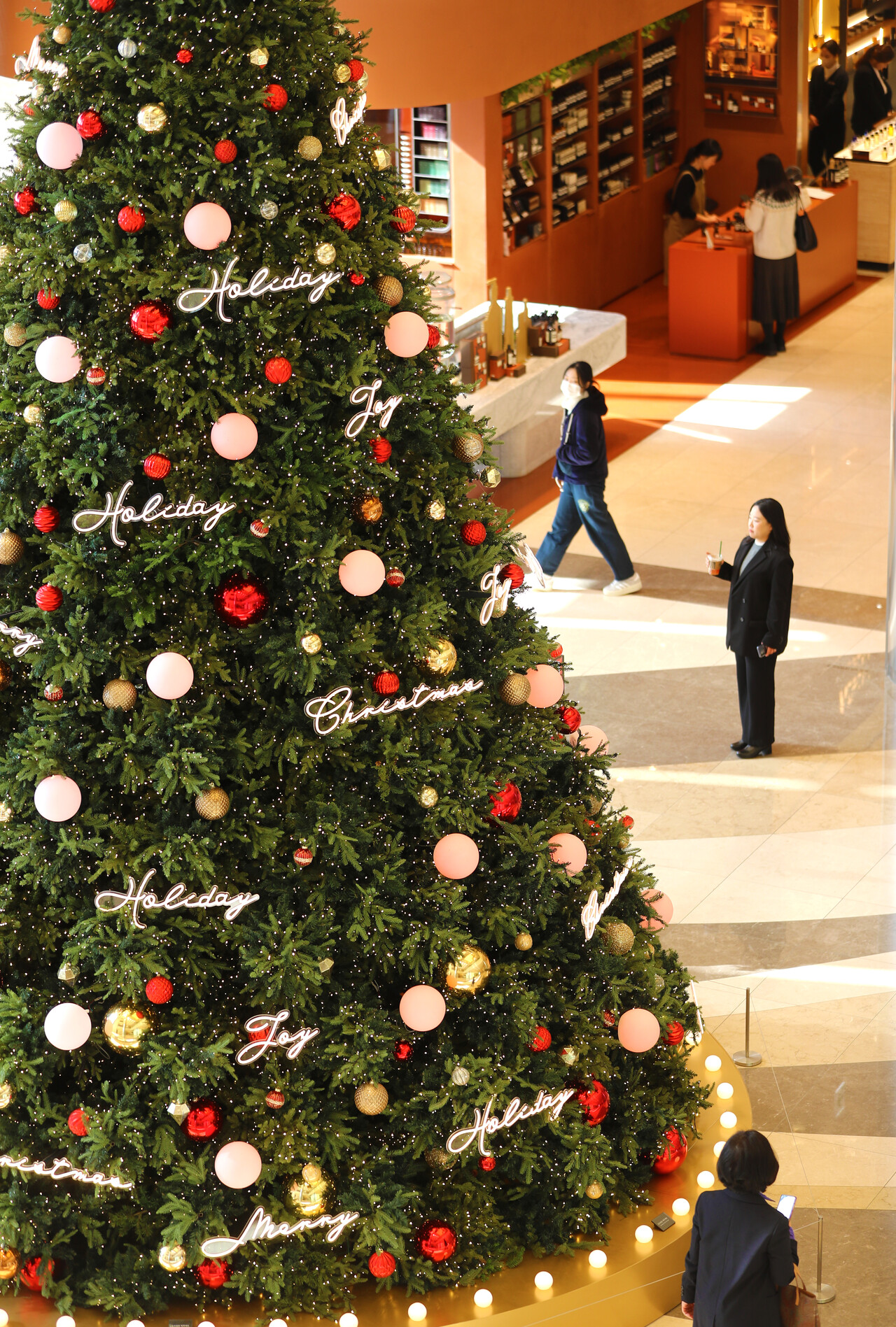 18일 대전 유성구 대전신세계 Art&Science 1층에 대형 크리스마스 트리가 설치돼 고객들의 발길을 사로잡고 있다.