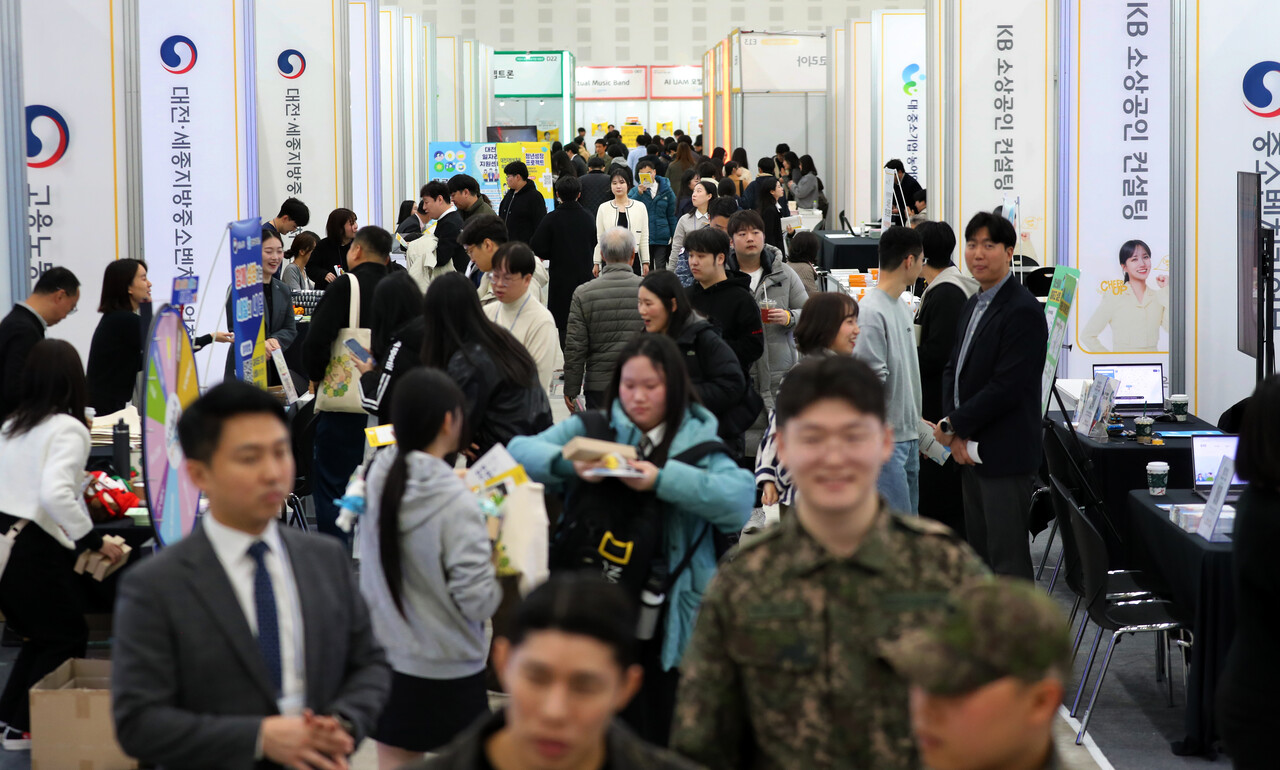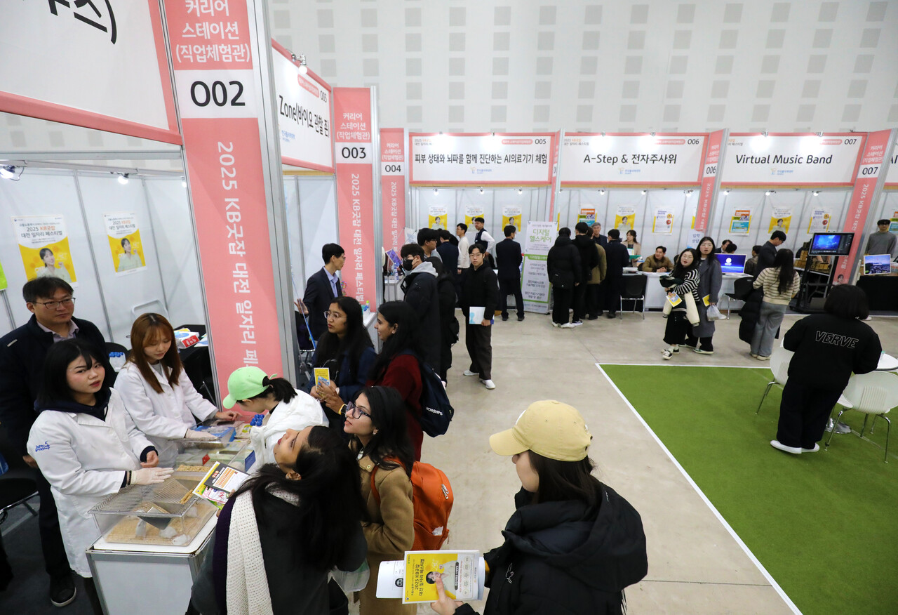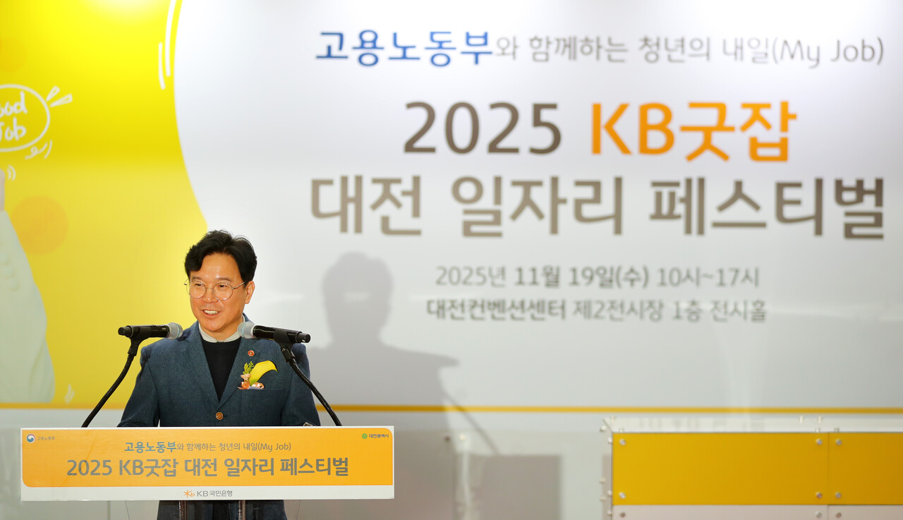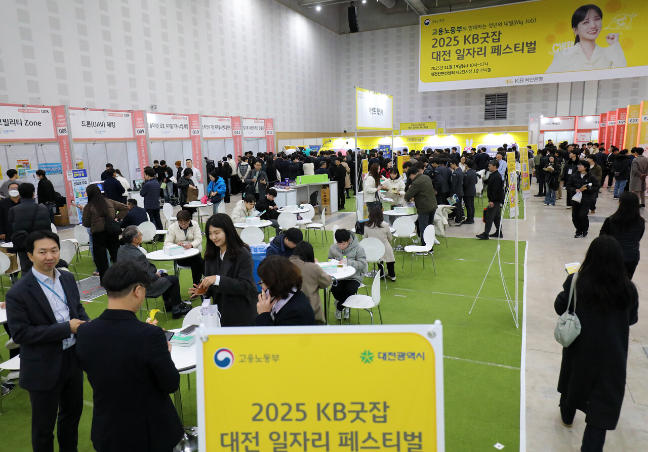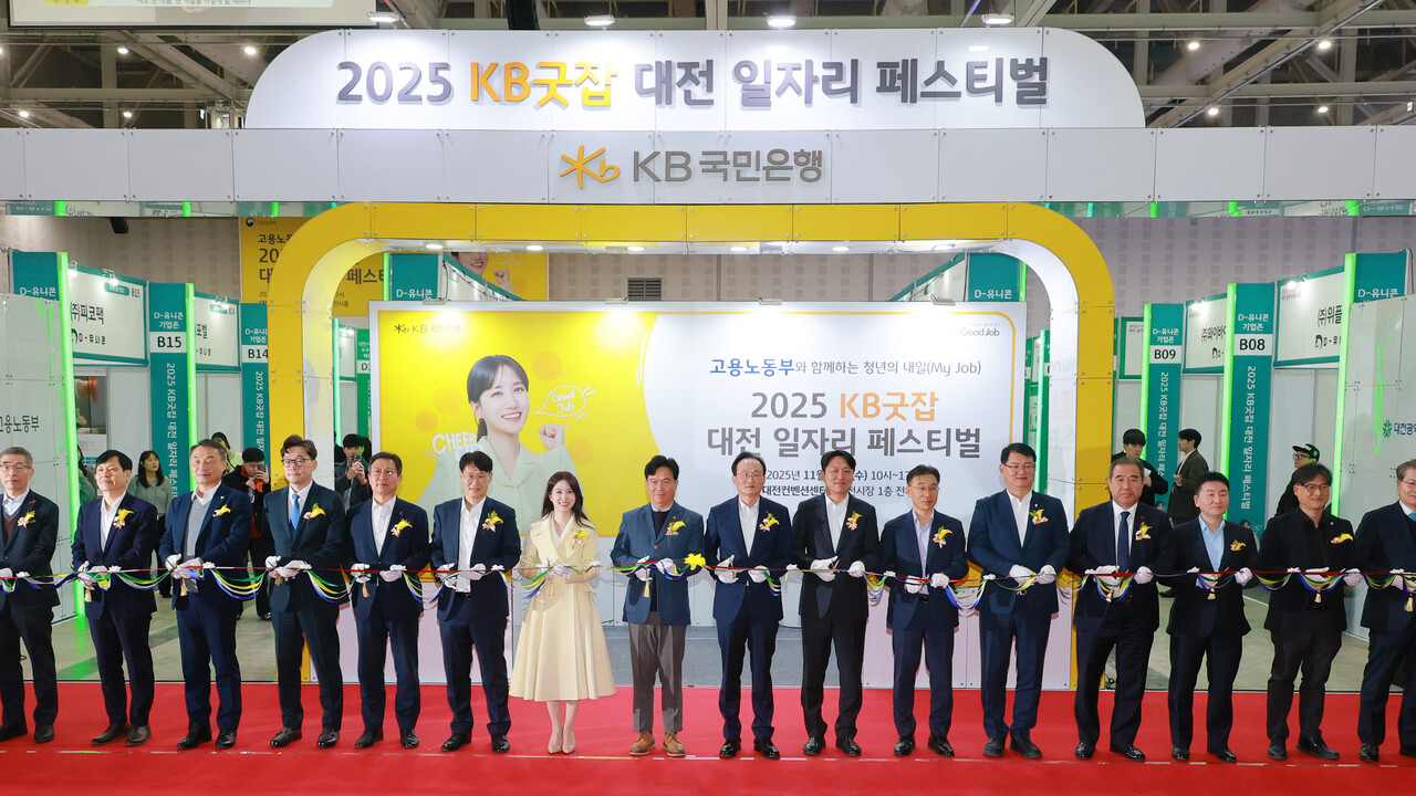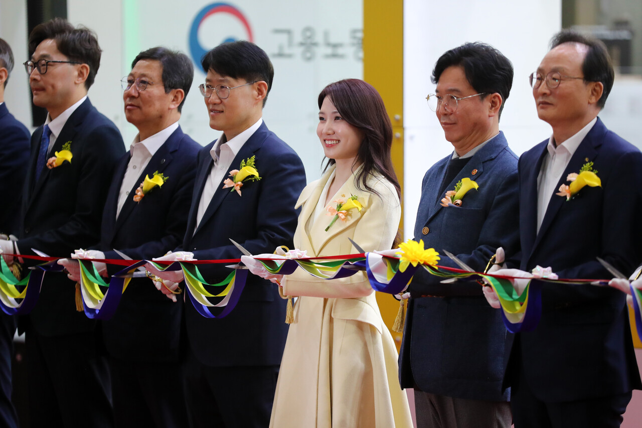 19일 오전 대전컨벤션센터에서 고용노동부와 KB국민은행, 대전시가 공동으로 주최한 ‘고용노동부와 함께하는 청년의 내일(My Job), 2025 KB굿잡 대전 일자리 페스티벌’에서 배우 박은빈과 내빈들이 테이프 커팅식을 진행하고 있다.
