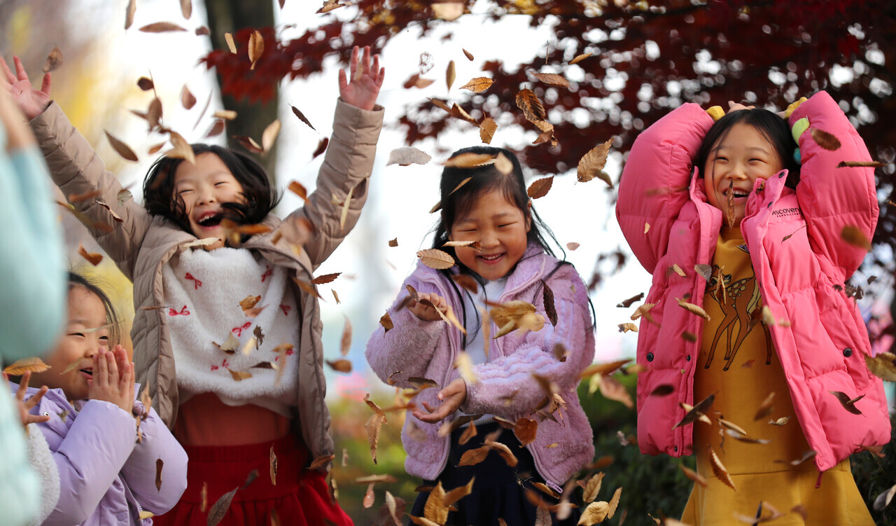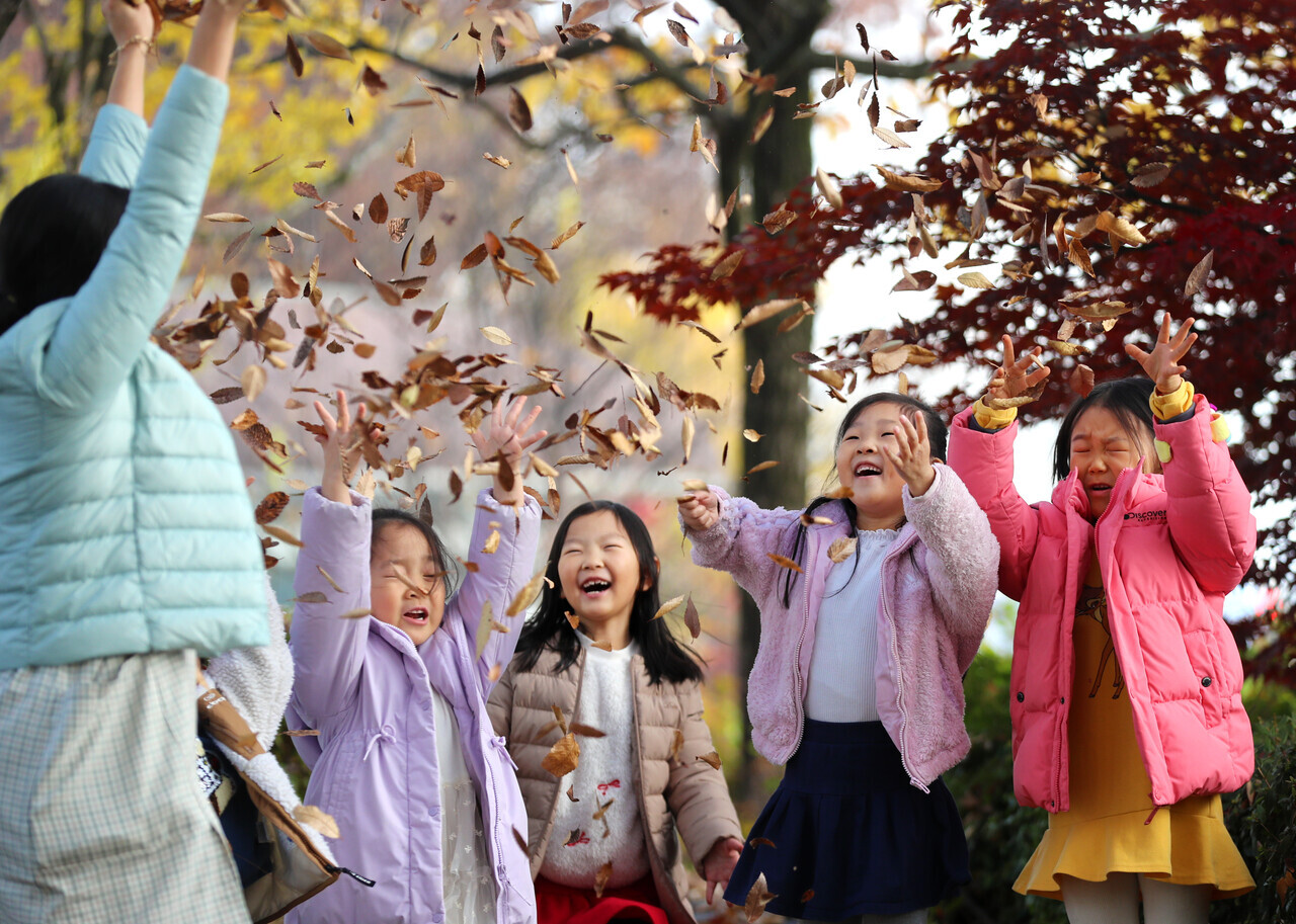 예년보다 포근한 날씨가 이어진 24일 오전 대전 유성구청 우리어린이집 원생들이 인근 산책로에서 형형색색의 낙엽을 한가득 모아 하늘로 흩뿌리며 환한 웃음을 터뜨리고 있다. 아이들은 떨어진 잎들을 모아 사람 얼굴을 만들며 서로의 작품을 자랑하고 계절이 건네준 작은 선물 속에서 따뜻한 가을의 끝자락을 마음껏 만끽하고 있다.